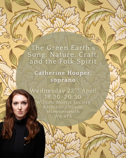 Concert II – The Green Earth's Song: Nature, Craft, and the Folk Spirit: Drawing on opera, English pastoral song, and European art song, this recital celebrates nature, community, and the handmade world Morris cherished. Catherine Hooper, soprano; George Ireland, piano.