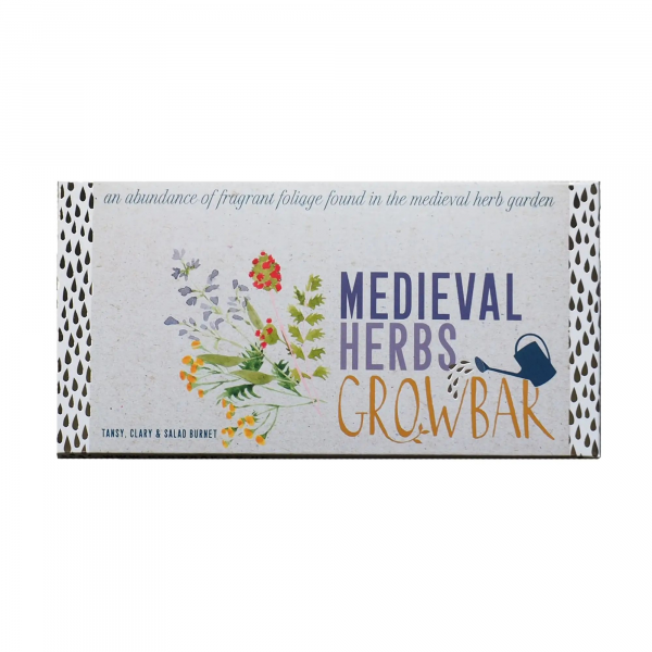 The Medieval Herb grow bar contains Tansy, Clary Seeds and Salad Burnet seeds.
