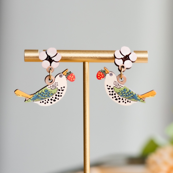 Add a touch of timeless artistry to your look with these Strawberry Thief Bird Drop Earrings, inspired by the iconic designs of William Morris. Crafted from lightweight wood and hand-painted in 11 beautiful, detailed colours, these elegant drop earrings celebrate nature, craftsmanship, and classic British design. Each pair features the beloved Strawberry Thief bird motif, carefully painted by hand to bring out the intricate patterns and vibrant tones. The wooden base makes them comfortable to wear all day, while the detailed finish gives them a beautifully premium feel. Perfect for lovers of arts and crafts style, nature-inspired jewellery, and unique statement accessories, these earrings make a thoughtful gift or a standout addition to your own collection.